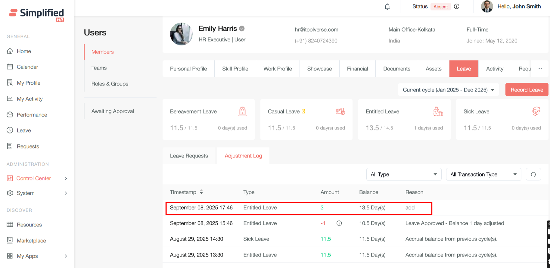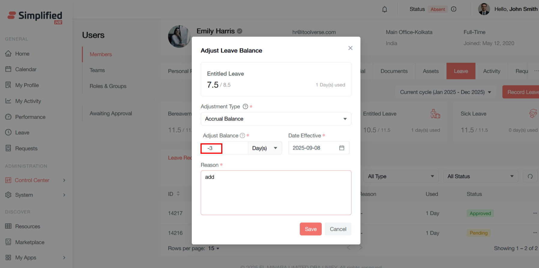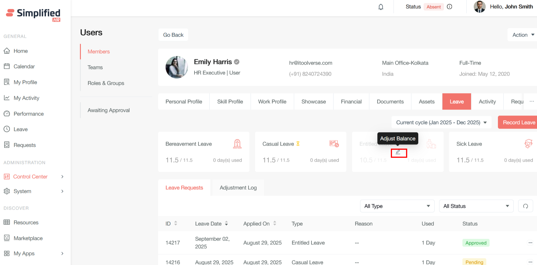 Adjust Leave Balance