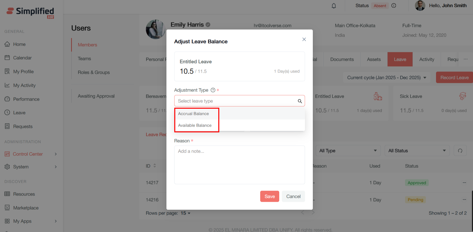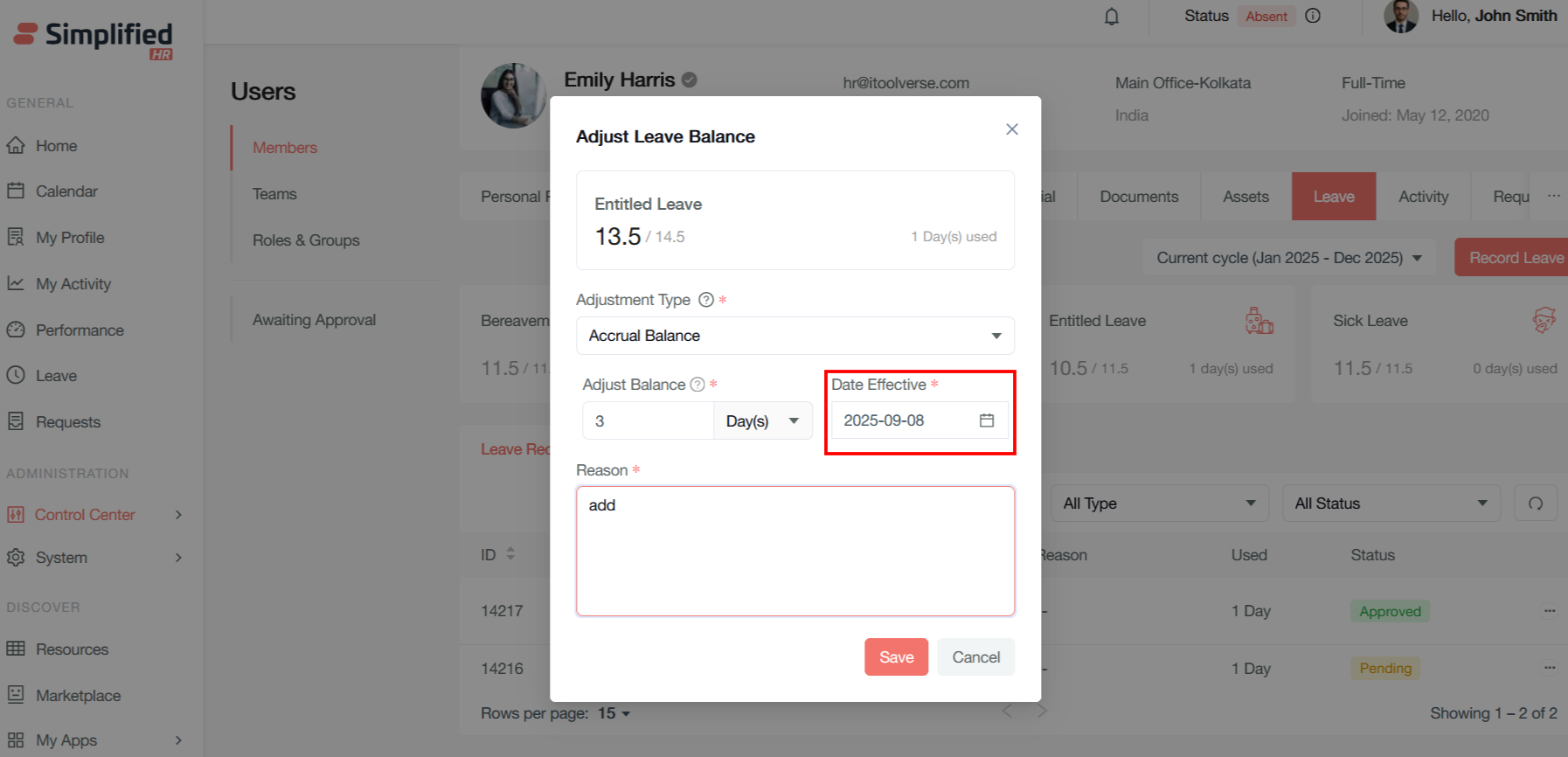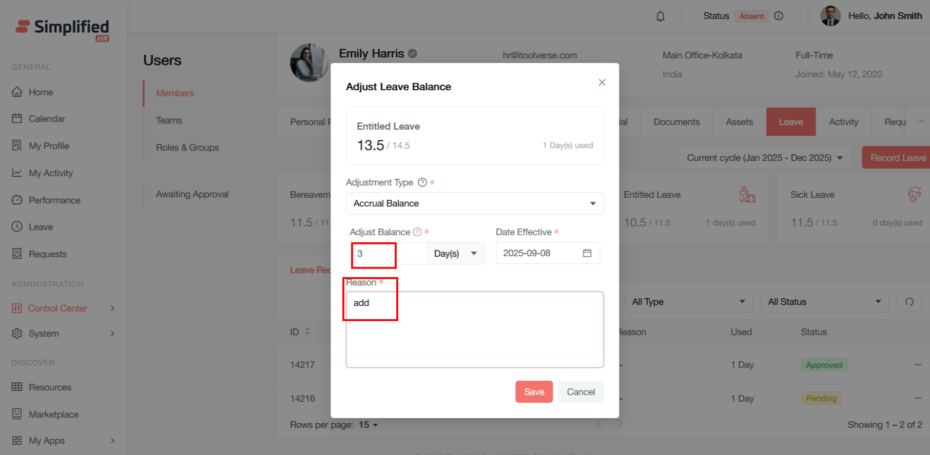 Adjust Leave Balance