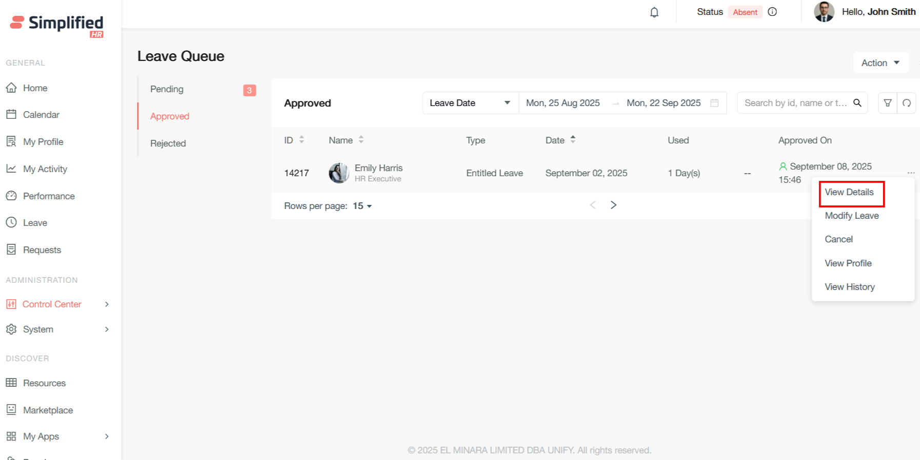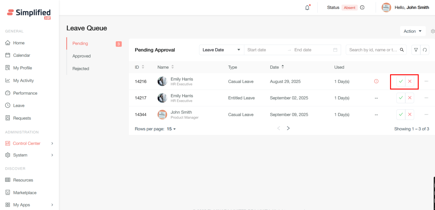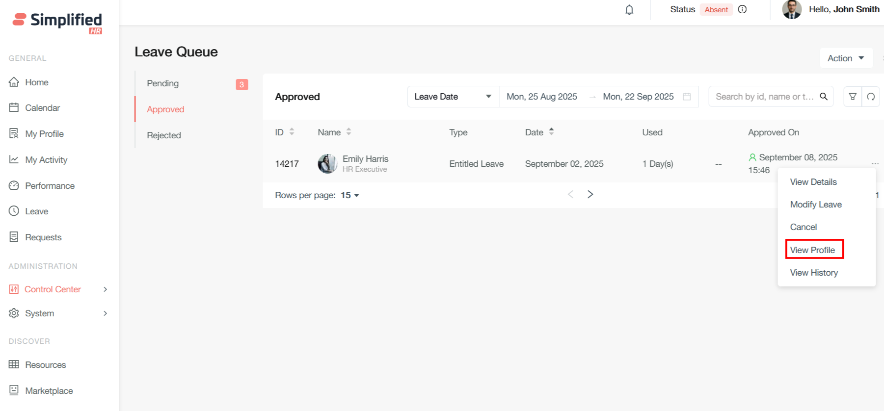 Once the leave is approved, the corresponding leave will be shown is Approved leave queue