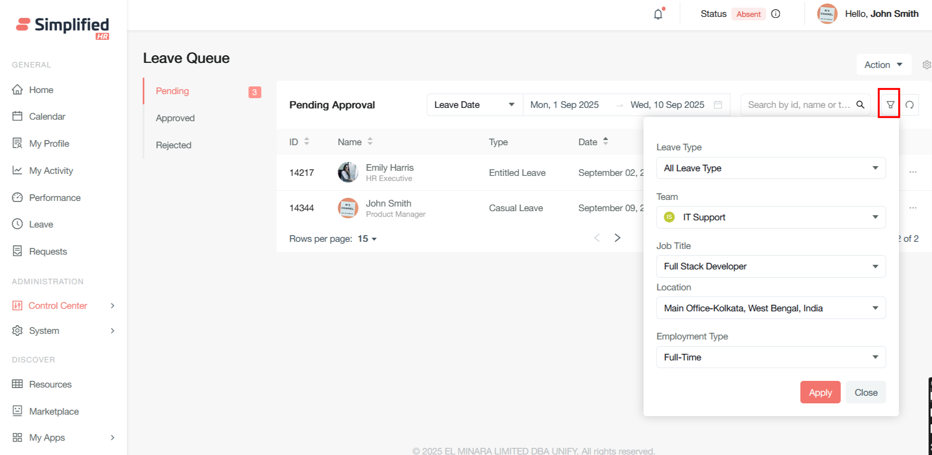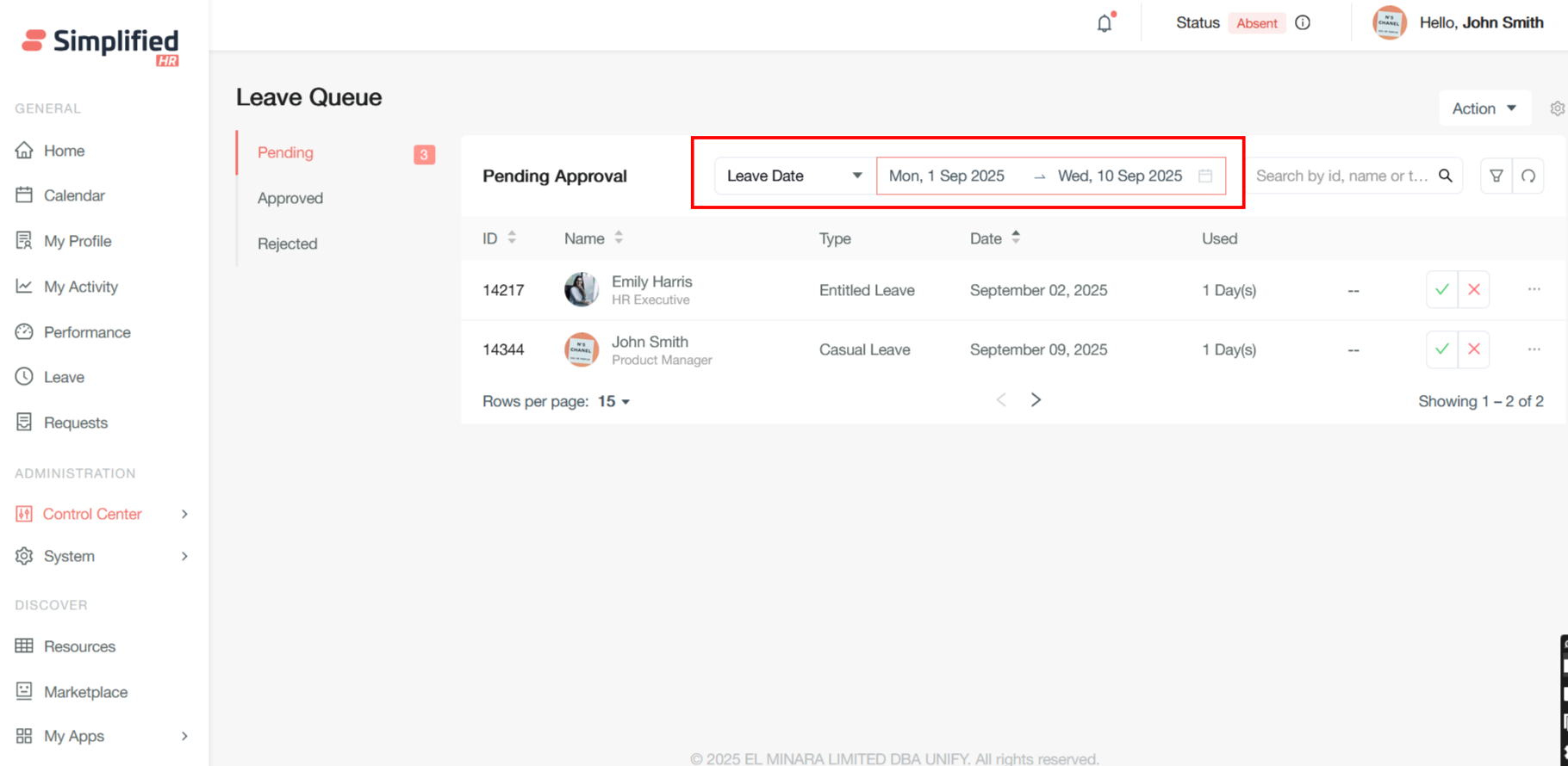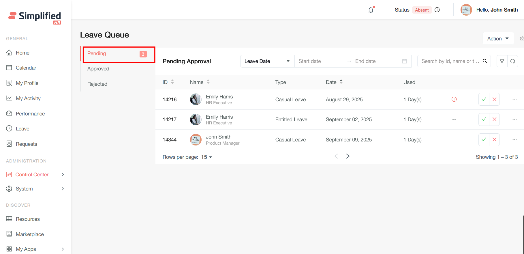 Once your leave is requested, the pending leave will be redirected to a specific user in Leave Queue who will approve the leave.