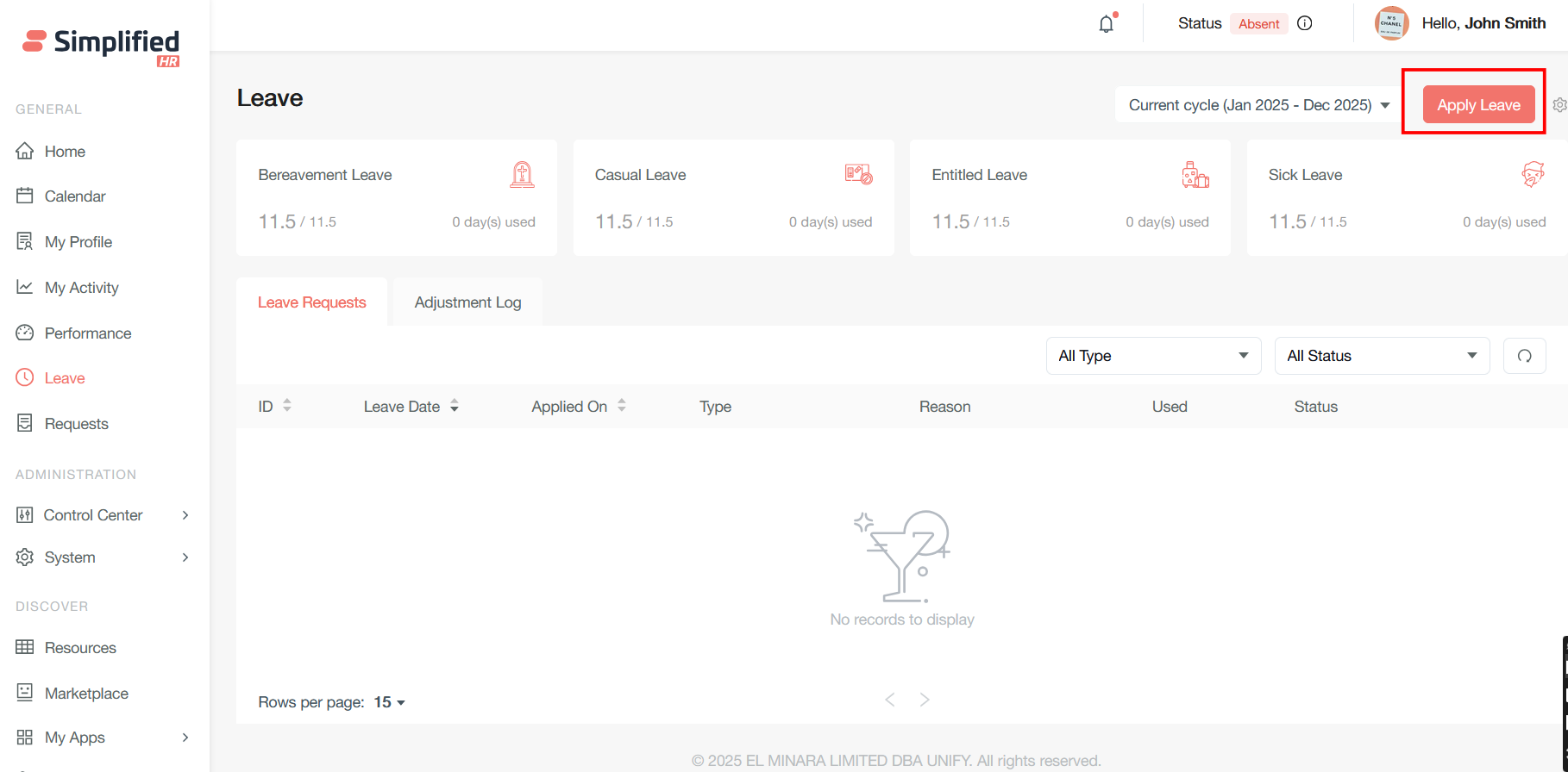 In the user profile go to the Leave Tab where all the leave types will be displayed