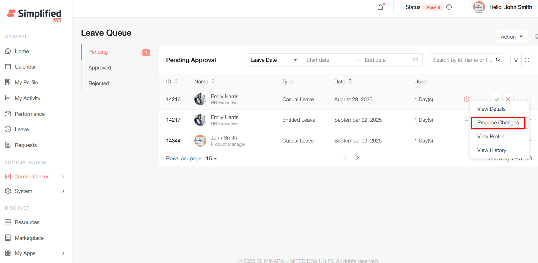 When you need to modify dates for a pending leave request (one that hasn't been approved yet), the process is typically straightforward and can be handled through self-service in most HR systems by clicking on the Propose changes button