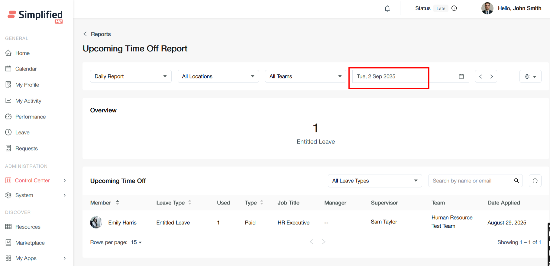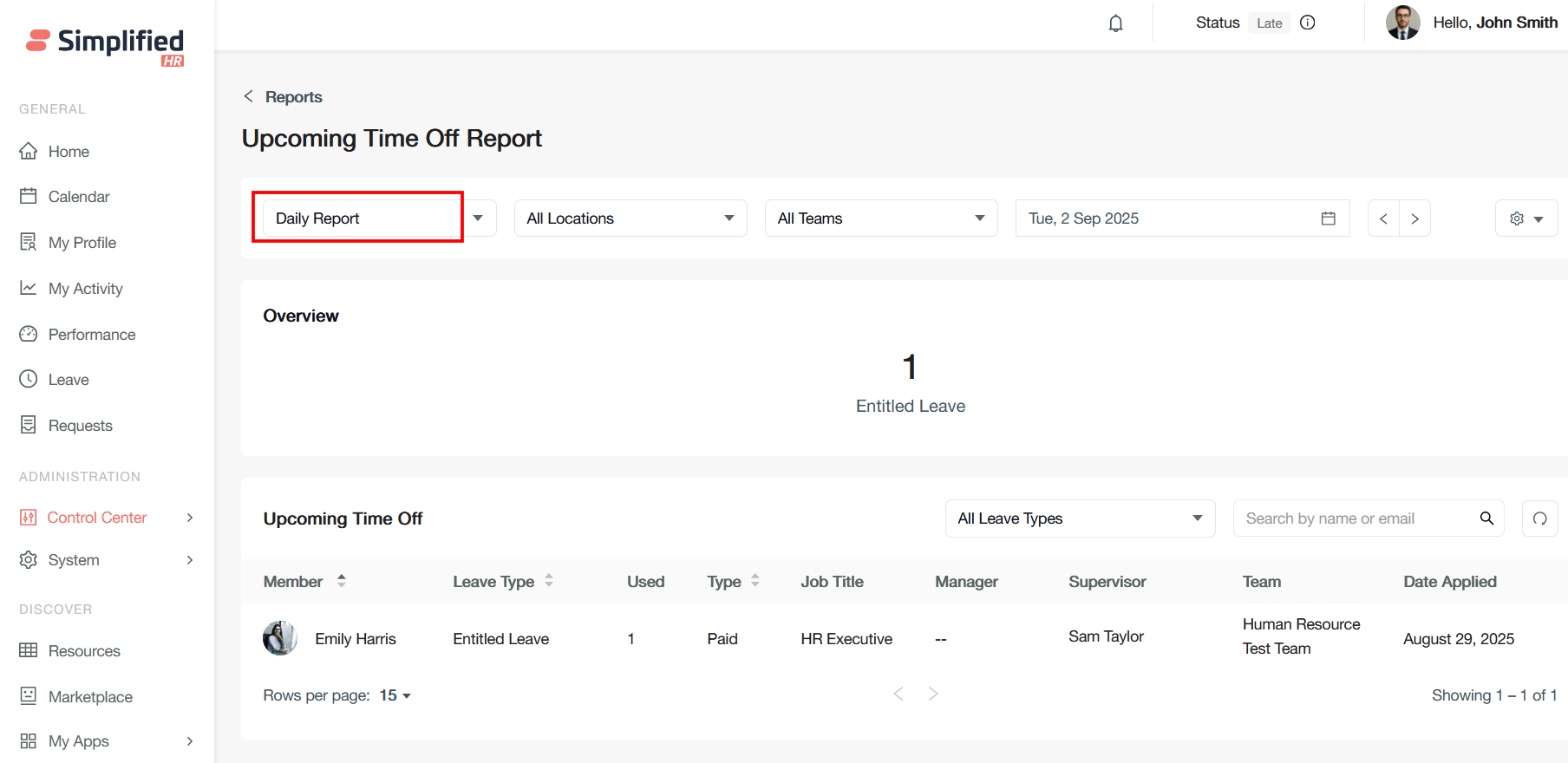 Daily leave status reports provide a real-time snapshot of employees currently on leave for any specific date.