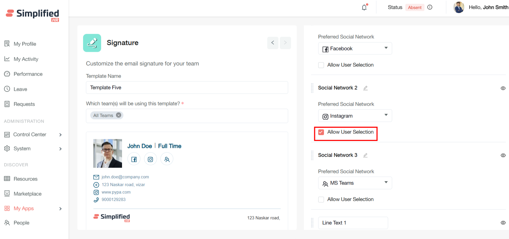 Allow User Selection Checkbox: When enabled, this feature permits individual users to customize certain signature elements after the template has been configured. This approach balances organizational control with personal customization needs.