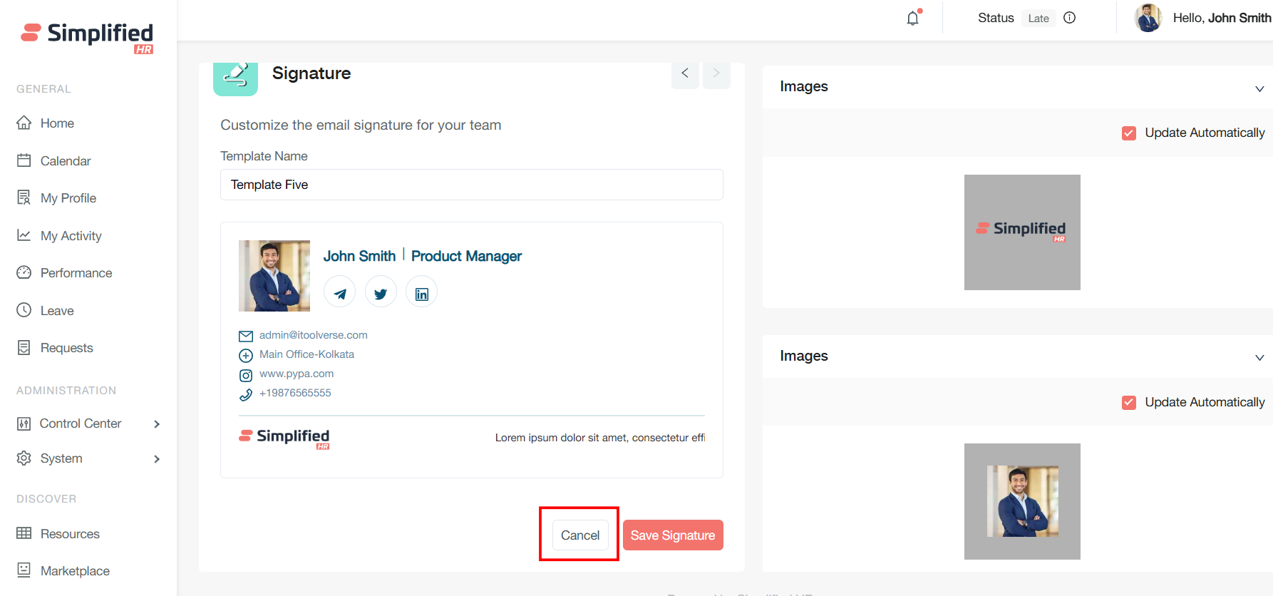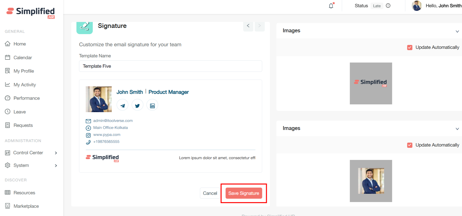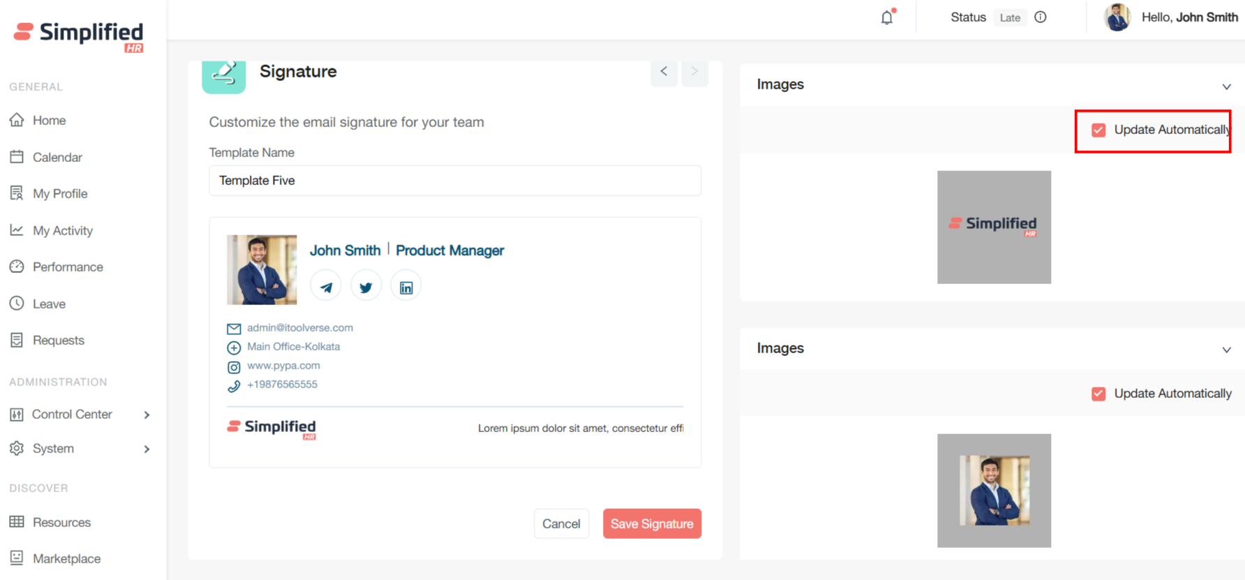 Team members see only relevant signature templates