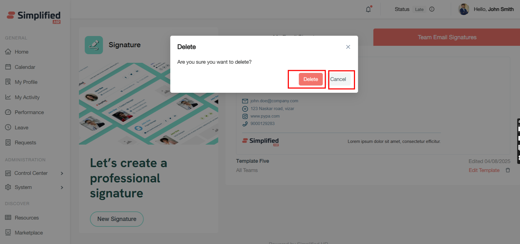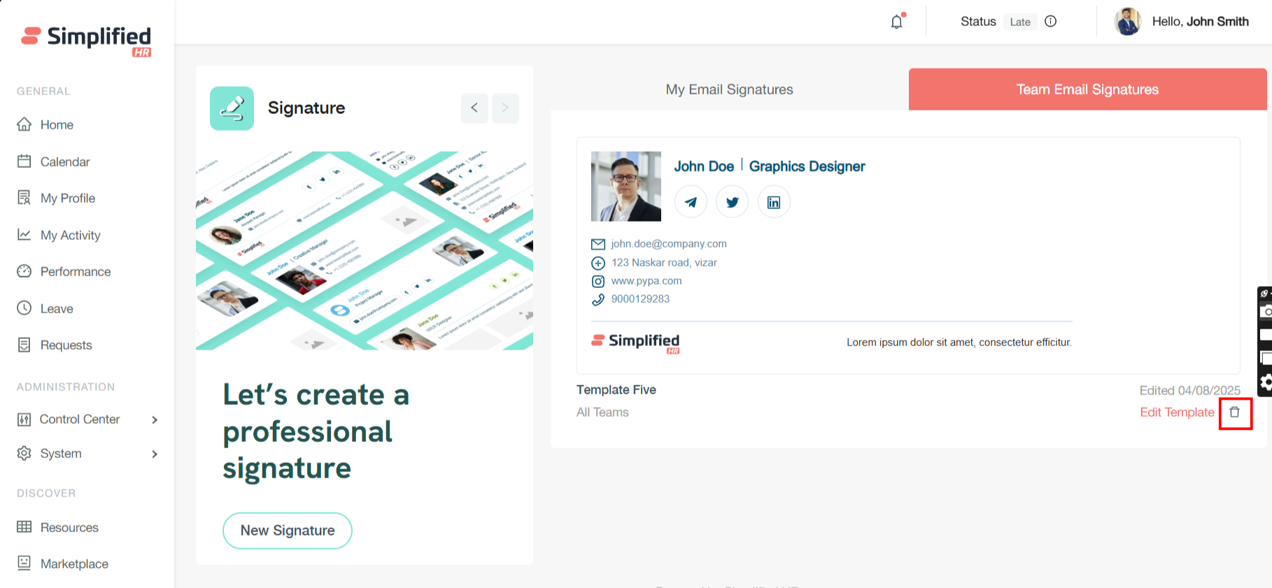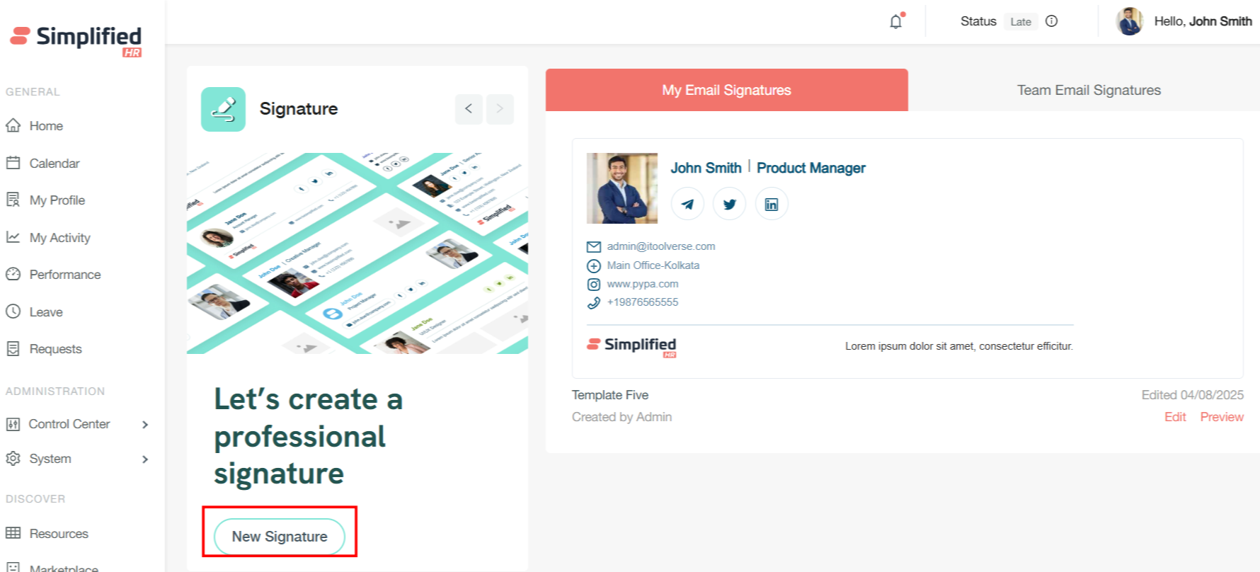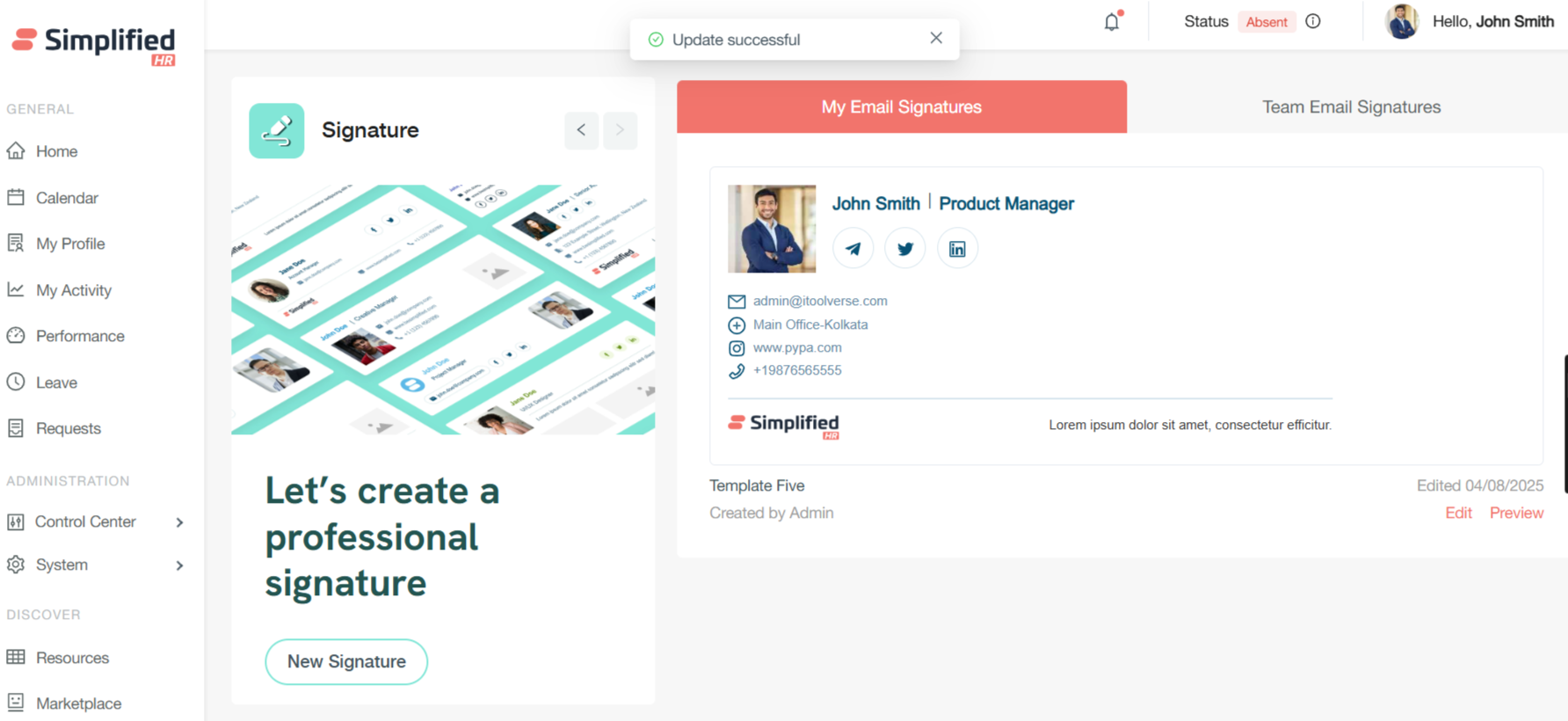 Last Modified Tracking: The system displays the last edited date for each template, providing visibility into when signatures were most recently updated.