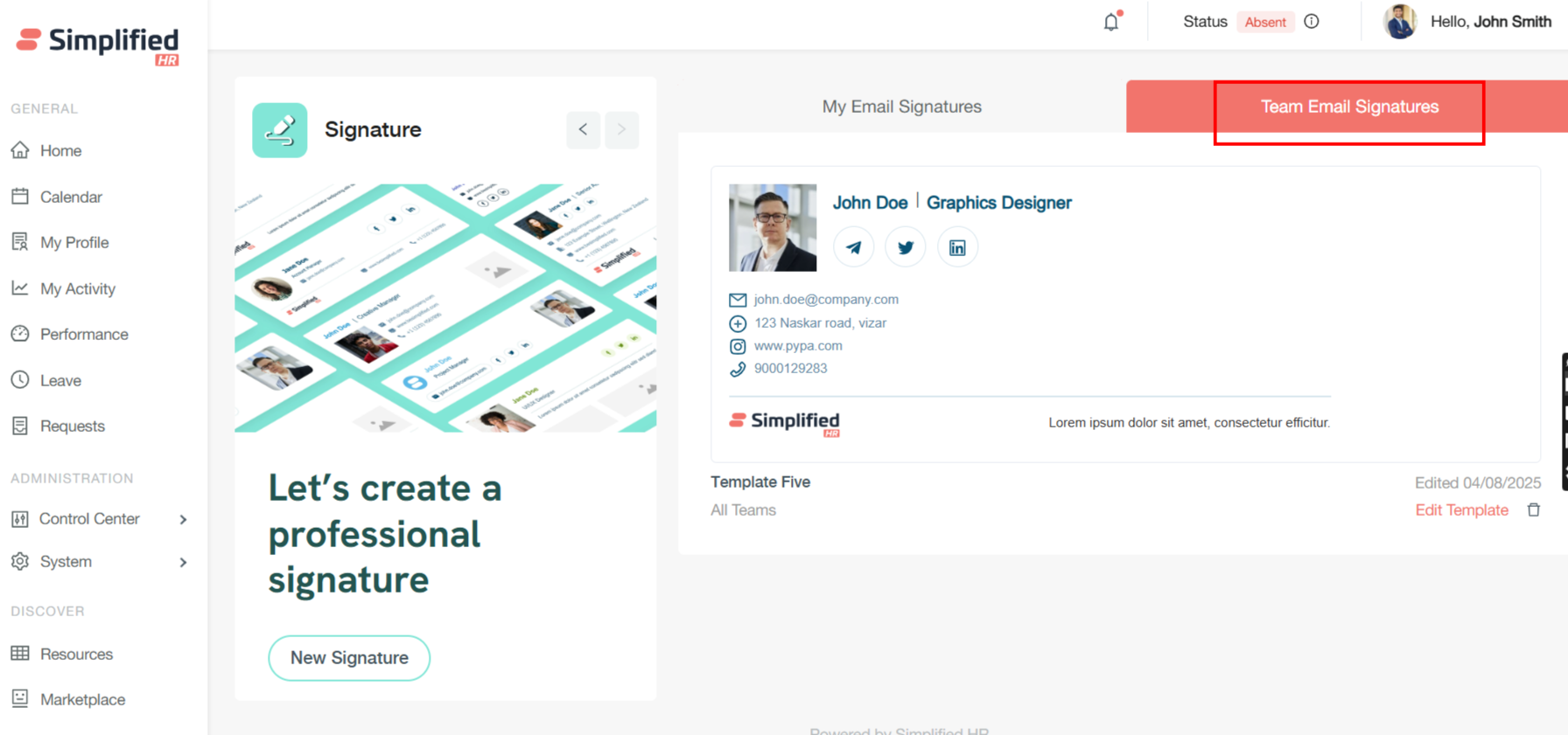 Team Email Signature is also displayed for the team members.