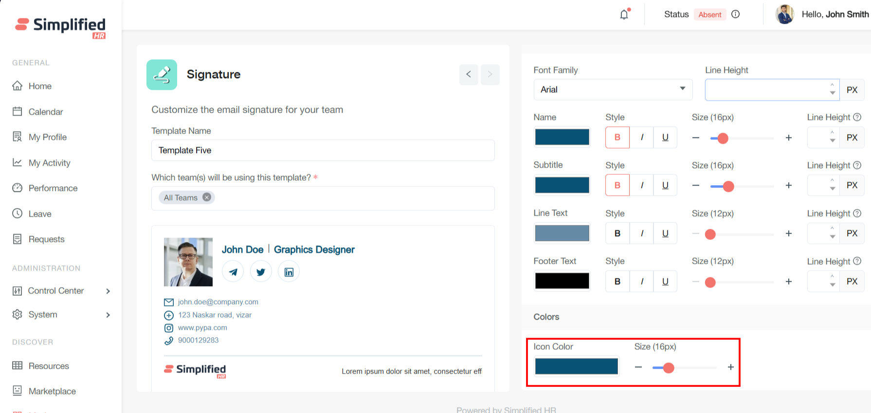 Icon Color Customization: Modify icon colors to match your organizational brand guidelines, ensuring visual consistency across all signatures and maintaining professional appearance standards.