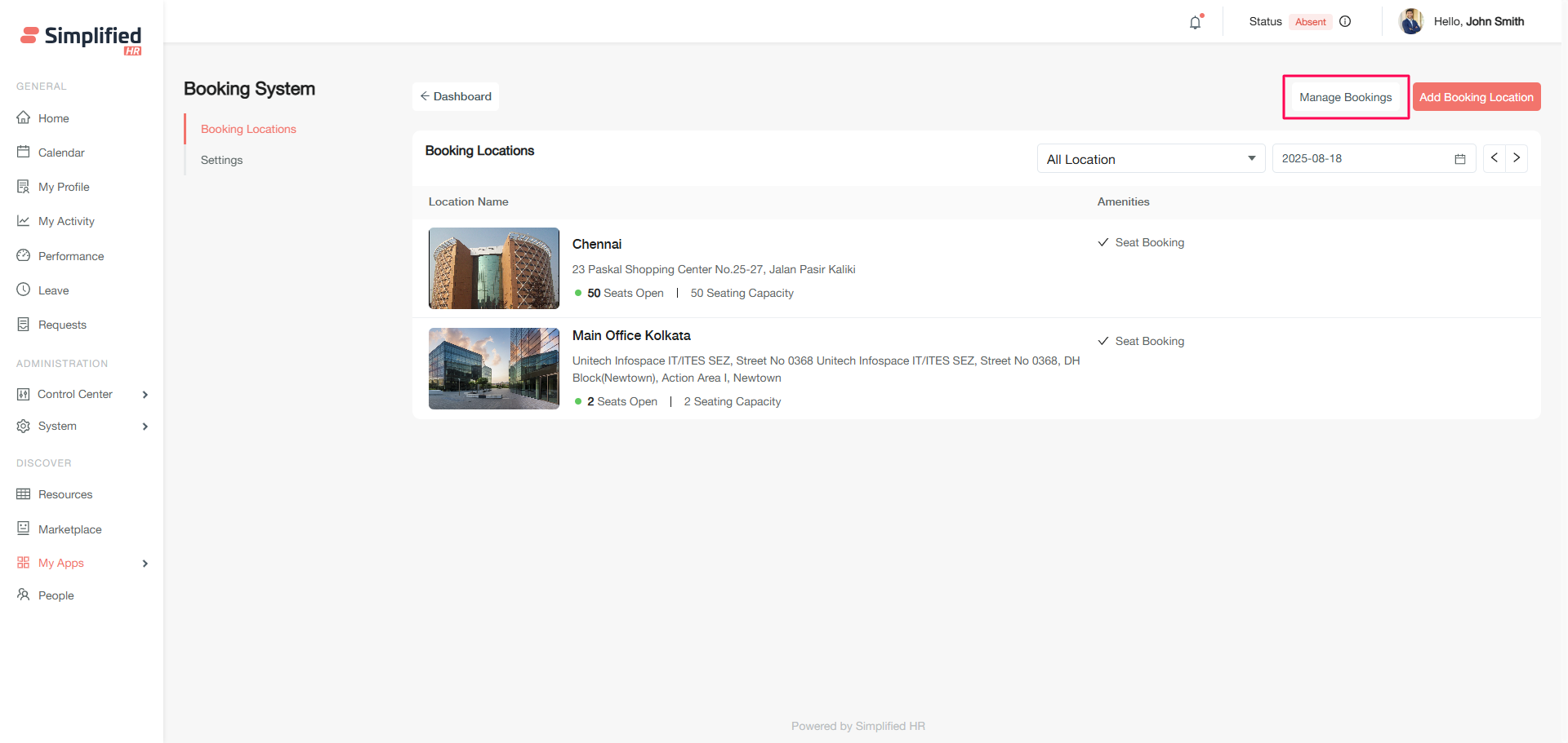 - Booking locations and spaces must be configured