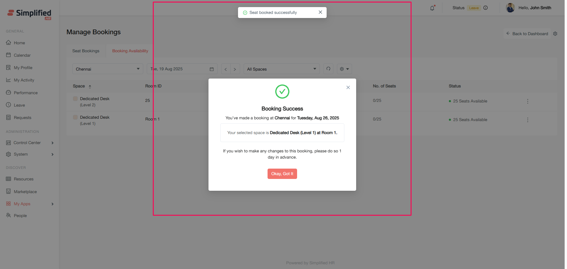 Note: All location restrictions and settings are overridden for administrative bookings and will be considered as active booking without any manual confirmation.