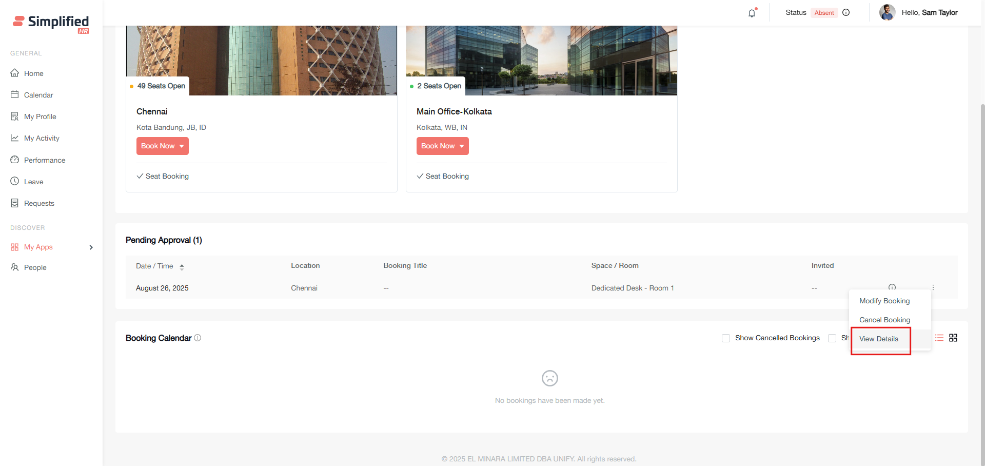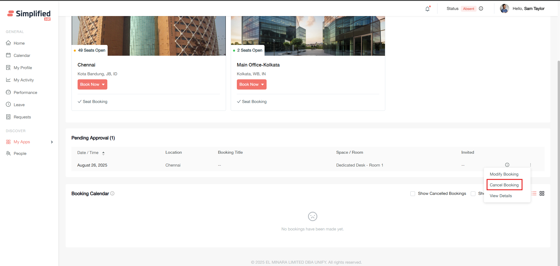 Permission-based access: Modify options only appear for booking owners