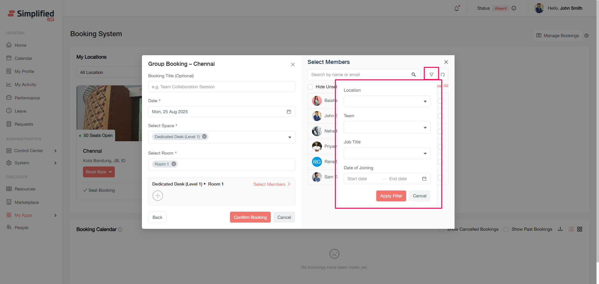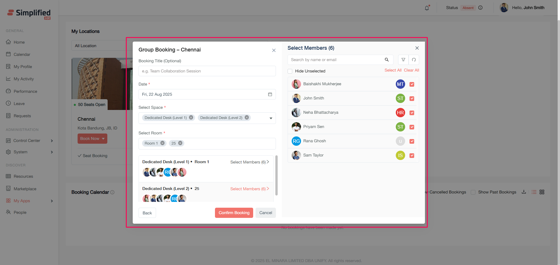Book seats for any members across your organization. This option allows you to invite any active organizational member.