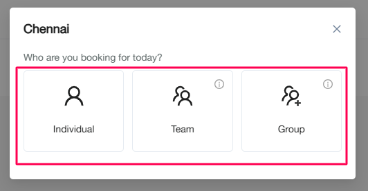 Select your booking type: Individual, Team, or Group.