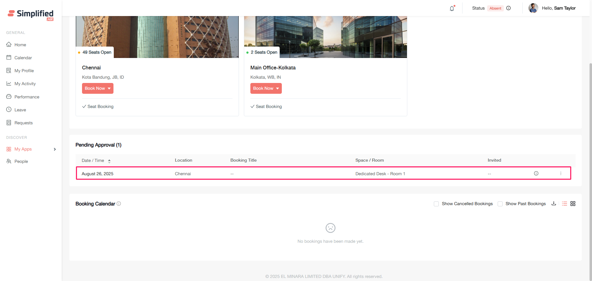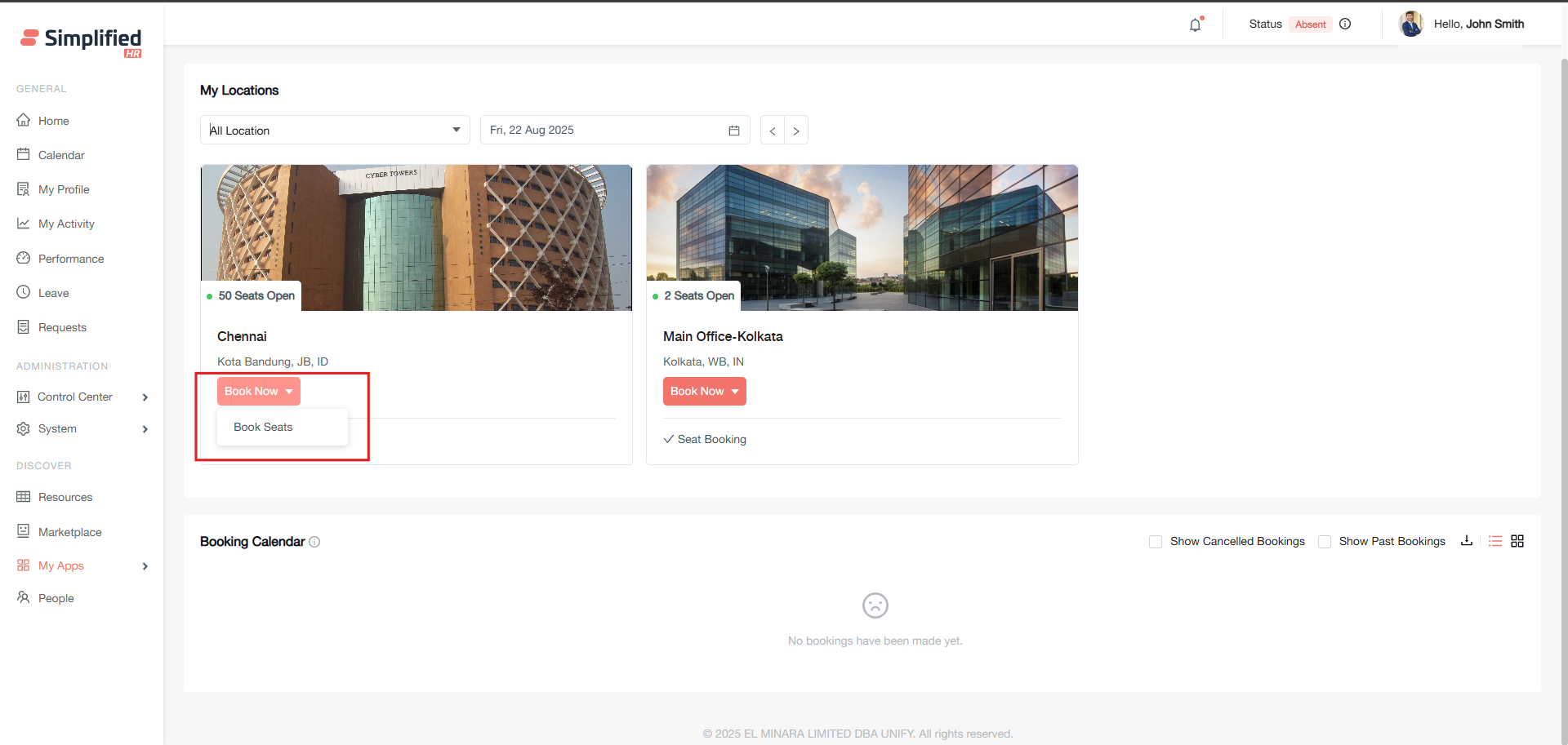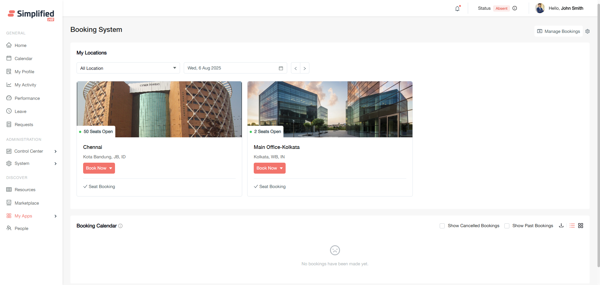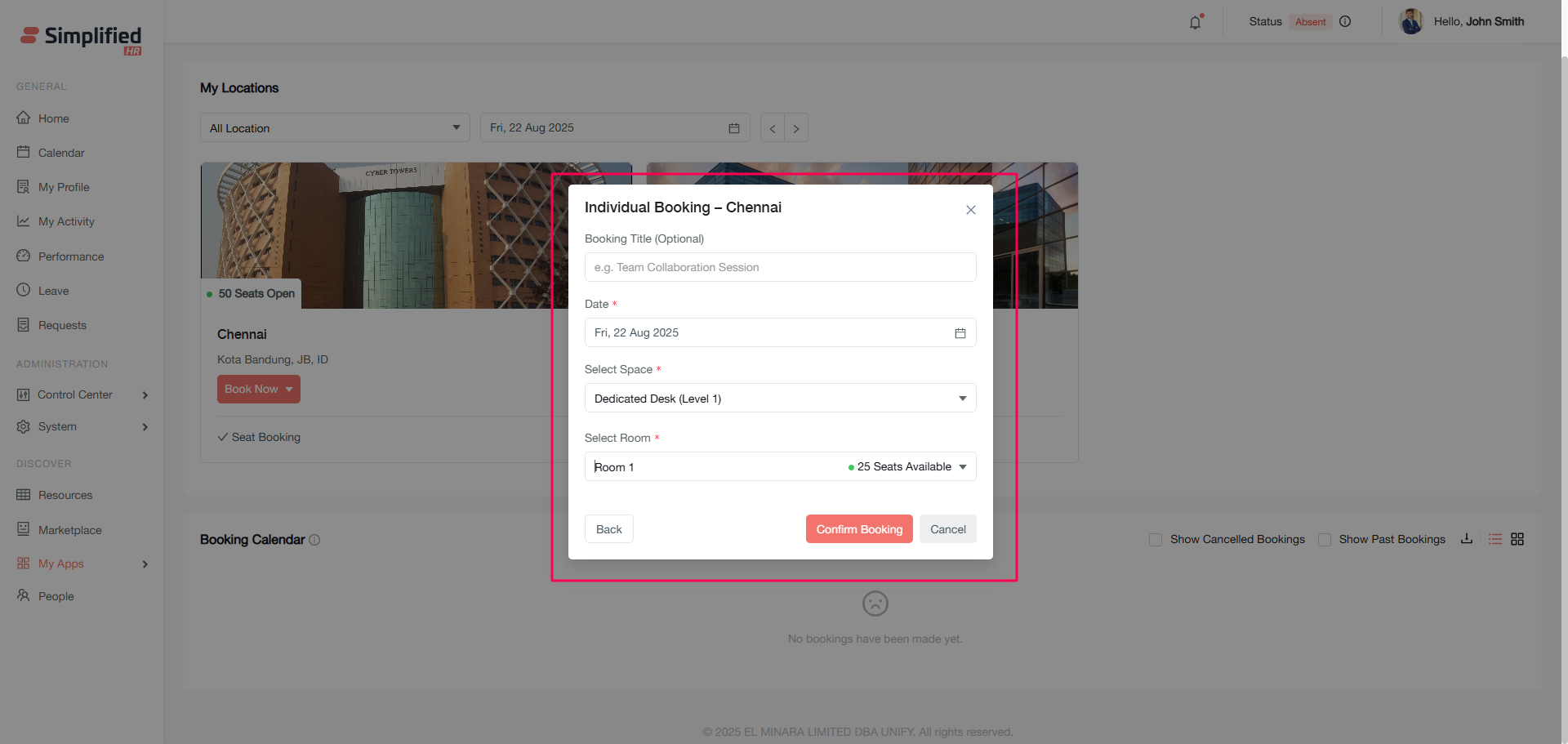 Booking locations and spaces must be configured by your administrator