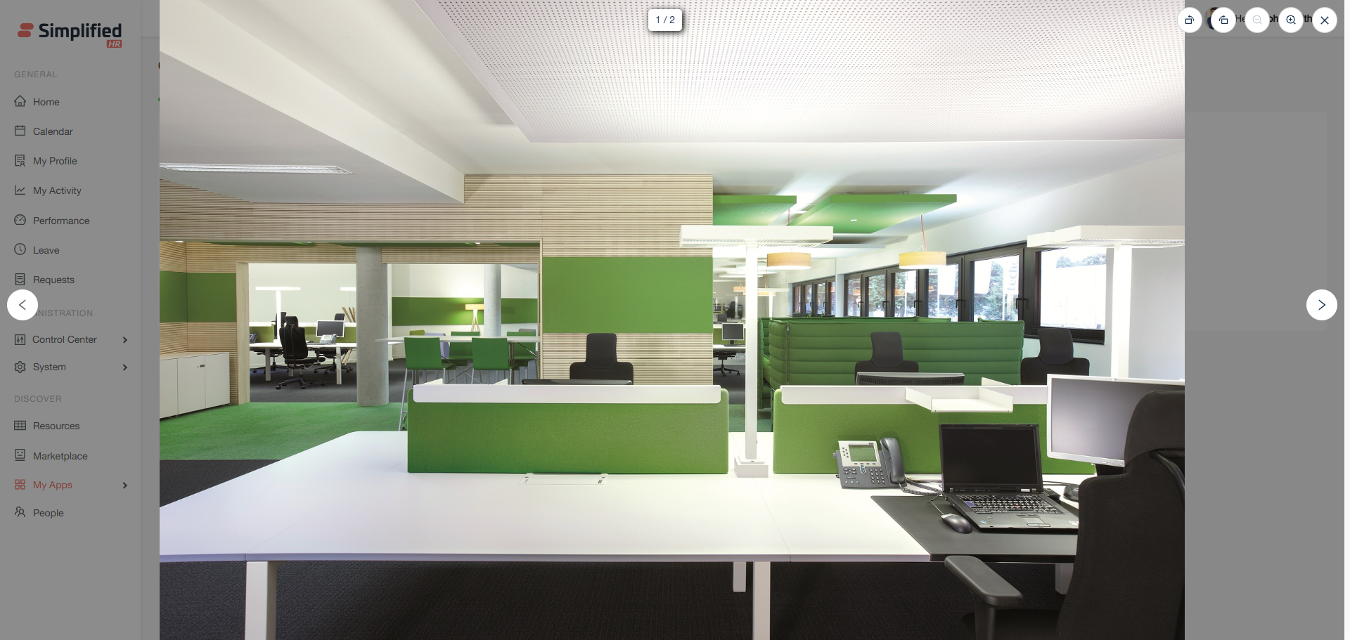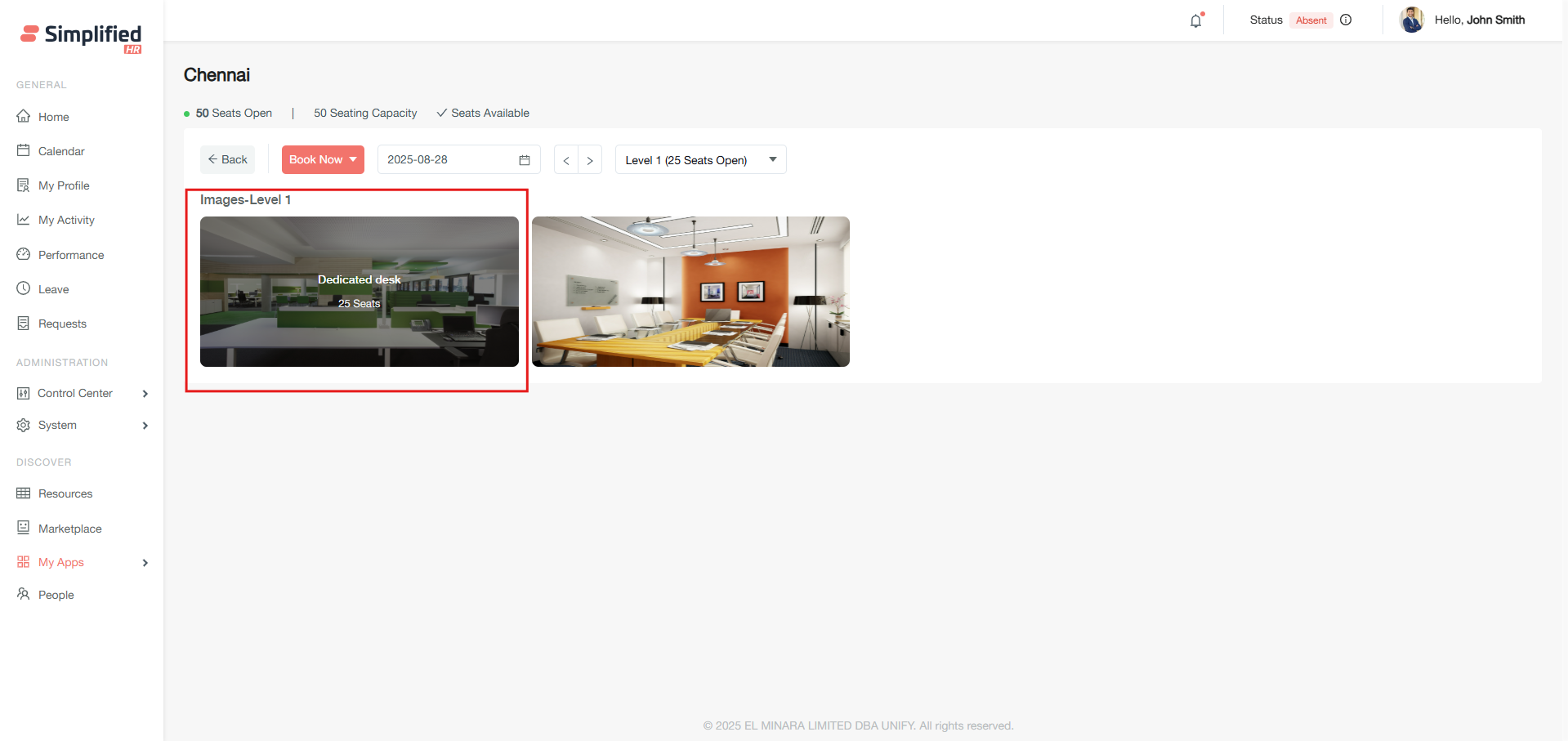 The visual booking interface (View UI) in EasyBook provides an enhanced booking experience when administrators have configured visual elements such as spaces, rooms, and floor plans. This interface allows you to see the physical layout of your workplace while making seat reservations.