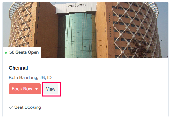 Amenities: Current booking options (typically "Seat booking now")