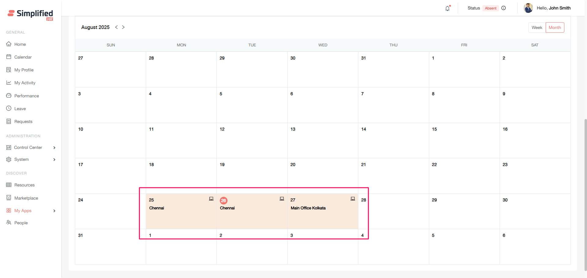 Displays bookings as individual thumbnail cards for easy access. This view will show the upcoming 10 days booking from the current date. To see booking beyond 10 days, one needs to switch to Month view.