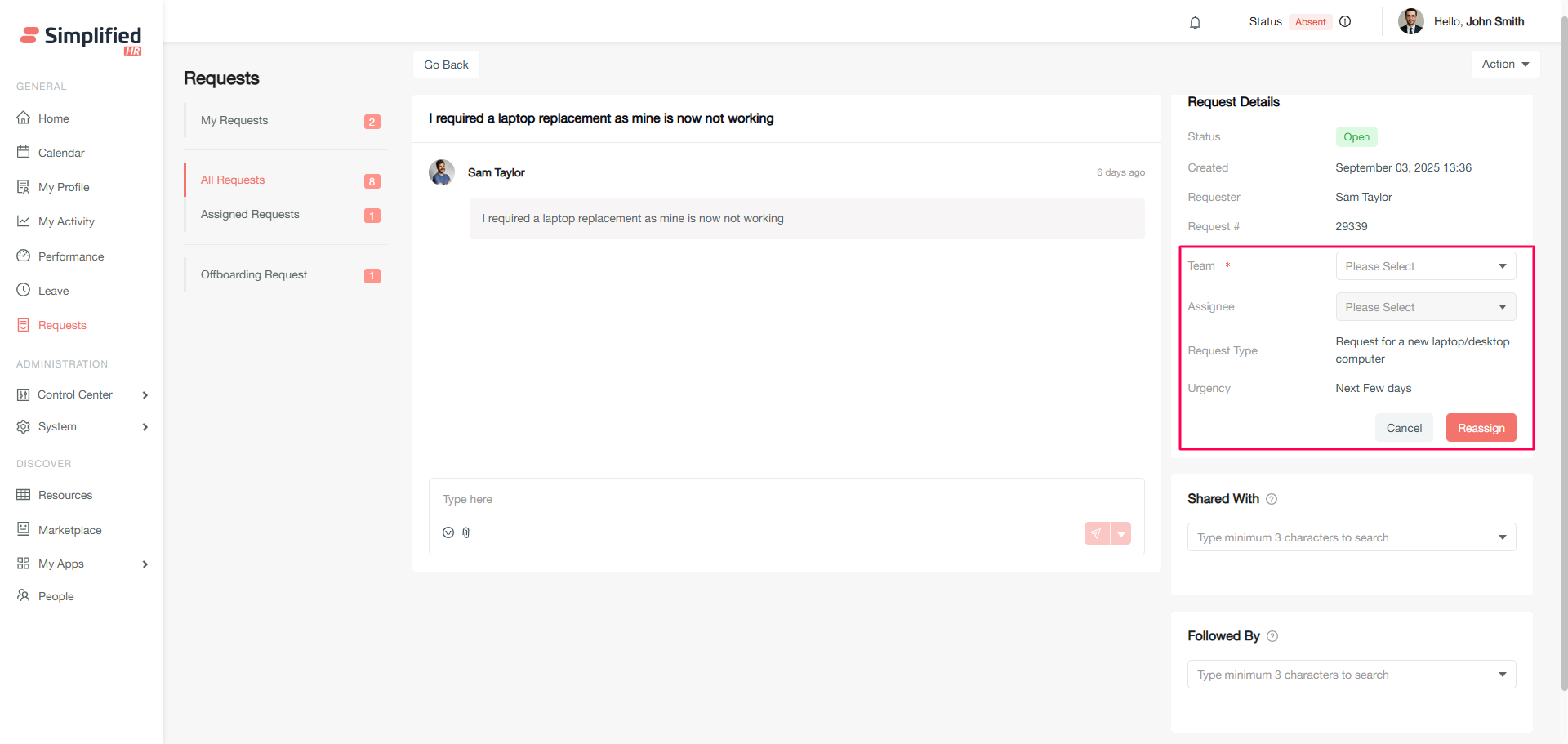 Assigned Request: Assigned Request will enlist all those requests which are assigned to the current logged in member.