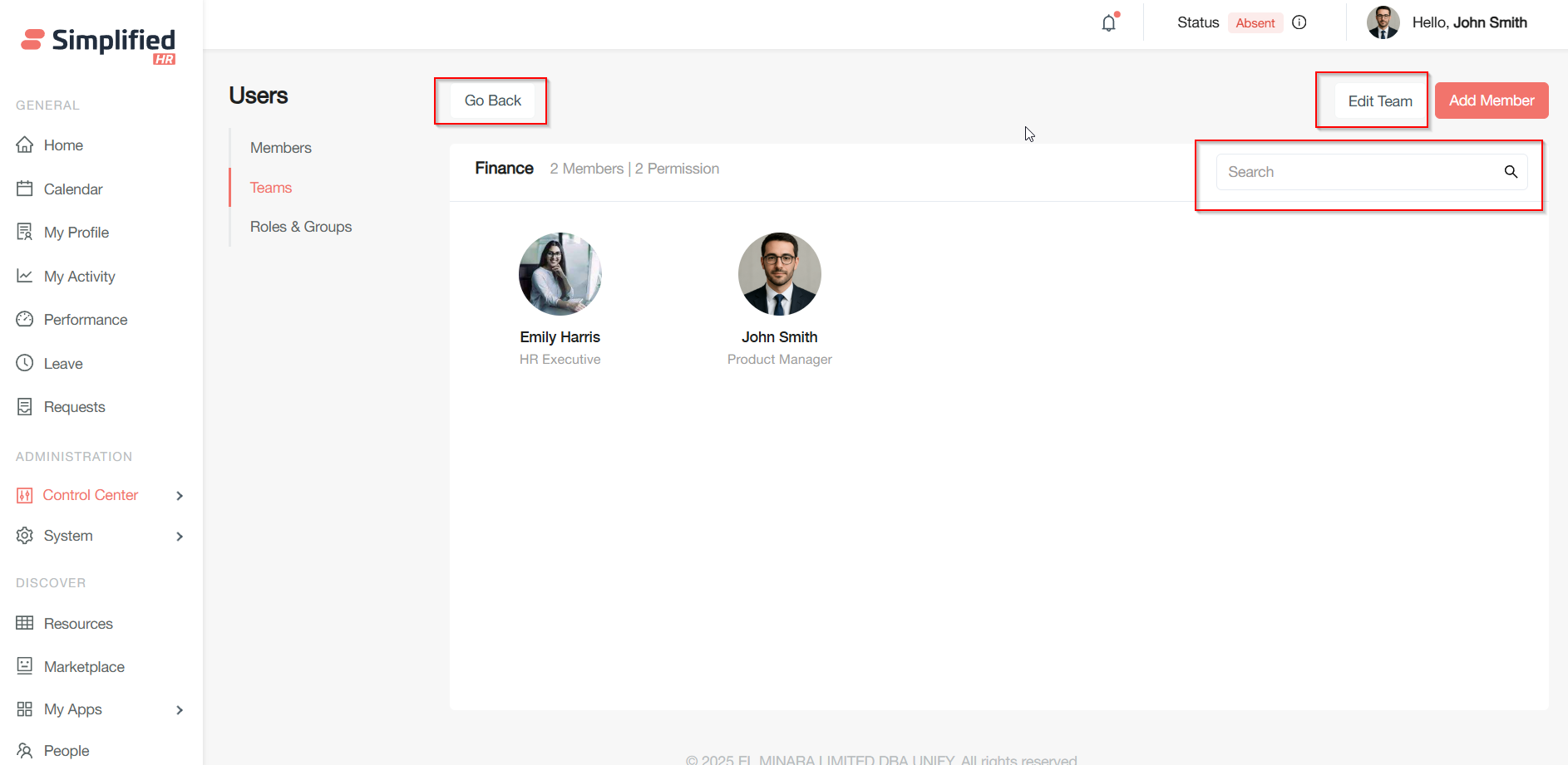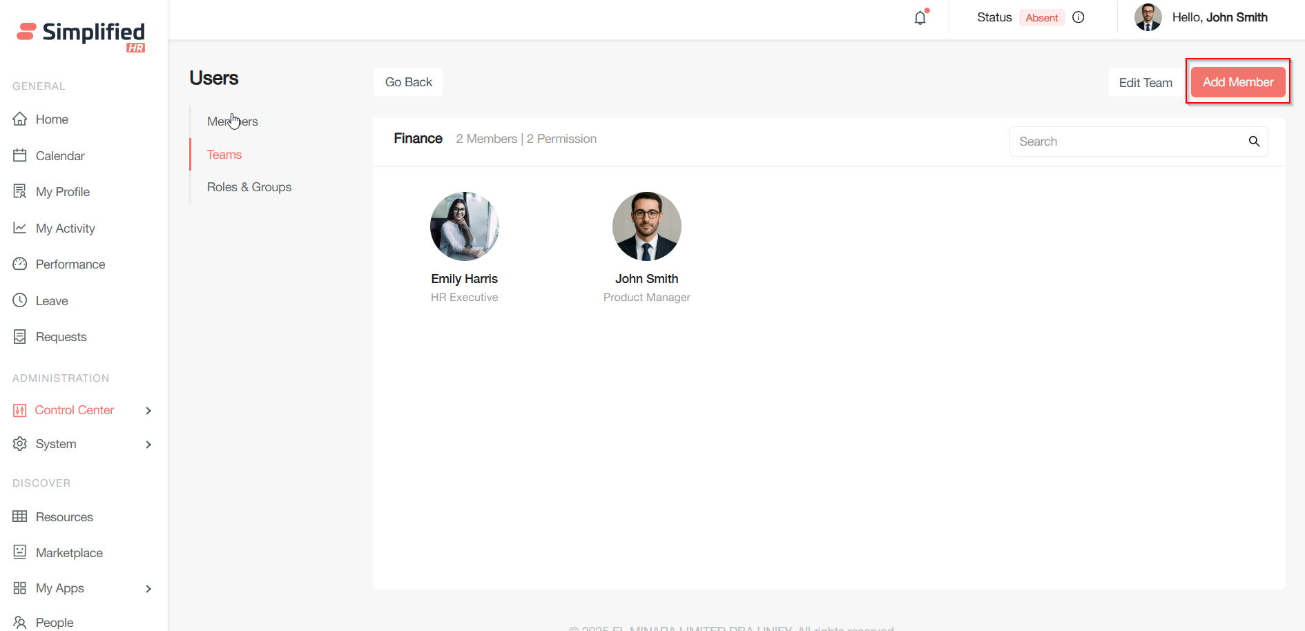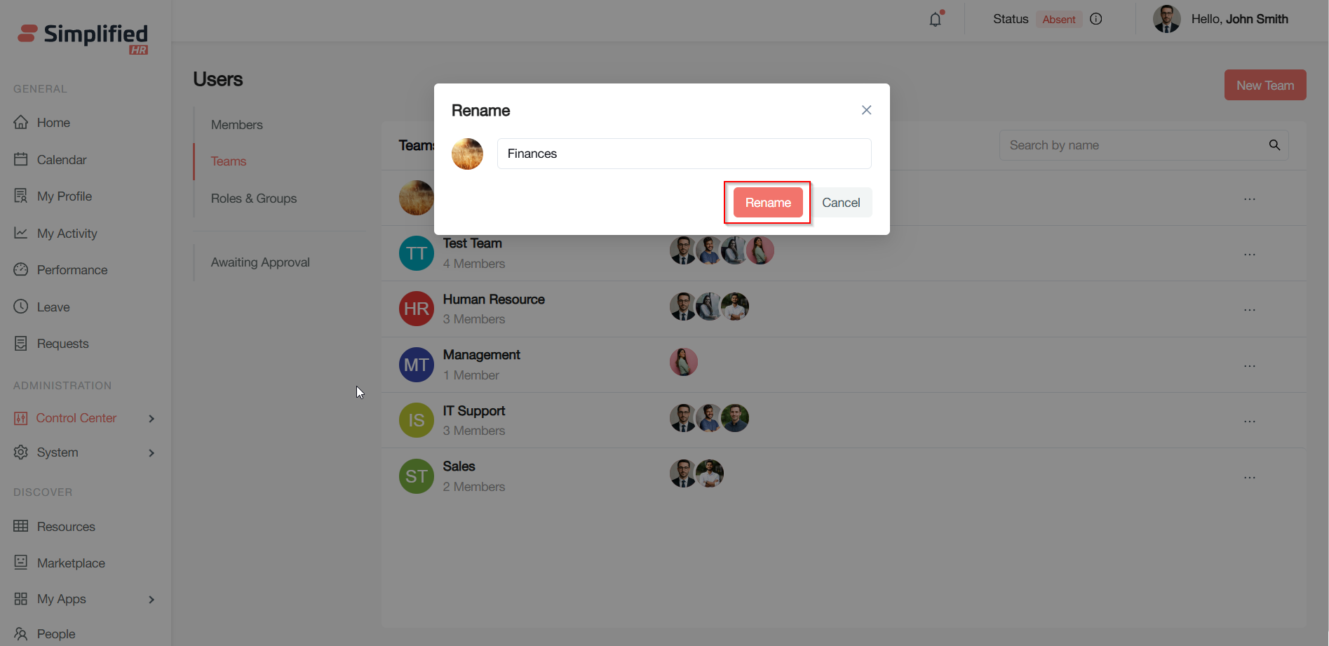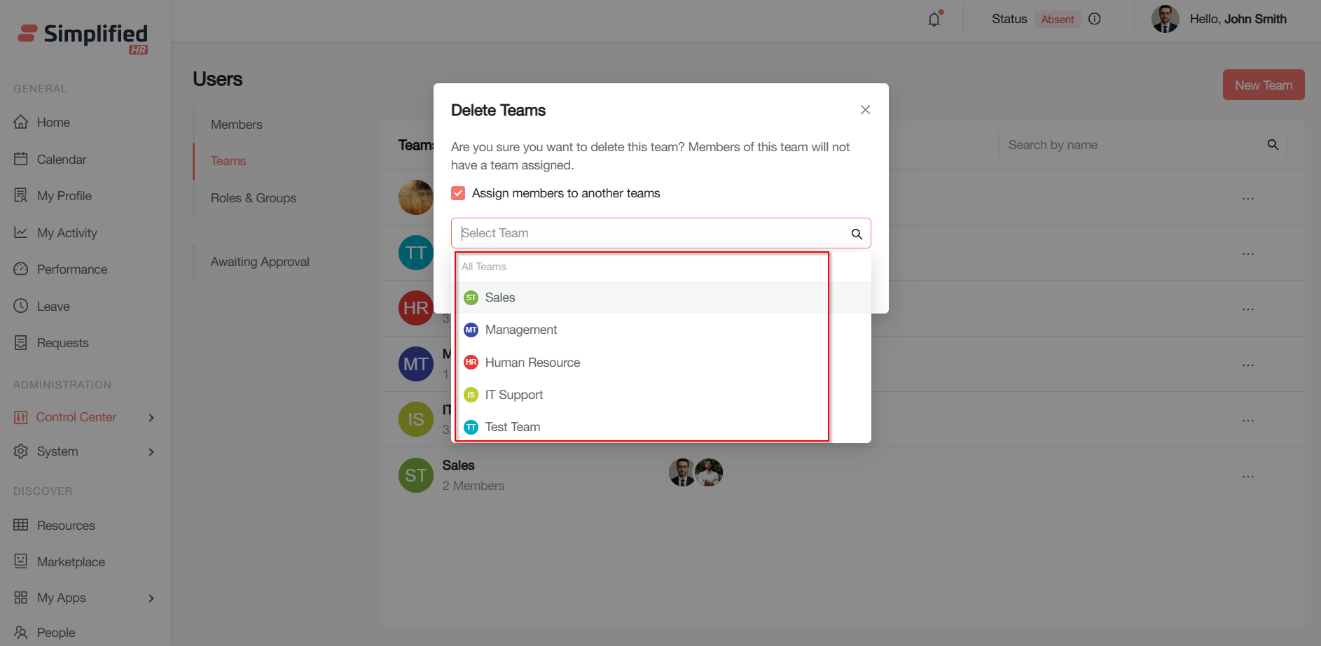 Navigate to Control Center > Users > Teams to access the Teams feature.