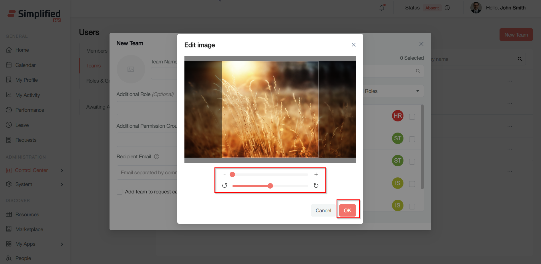 Adjust the size and crop the image to fit the circle in the editing pop-up window
