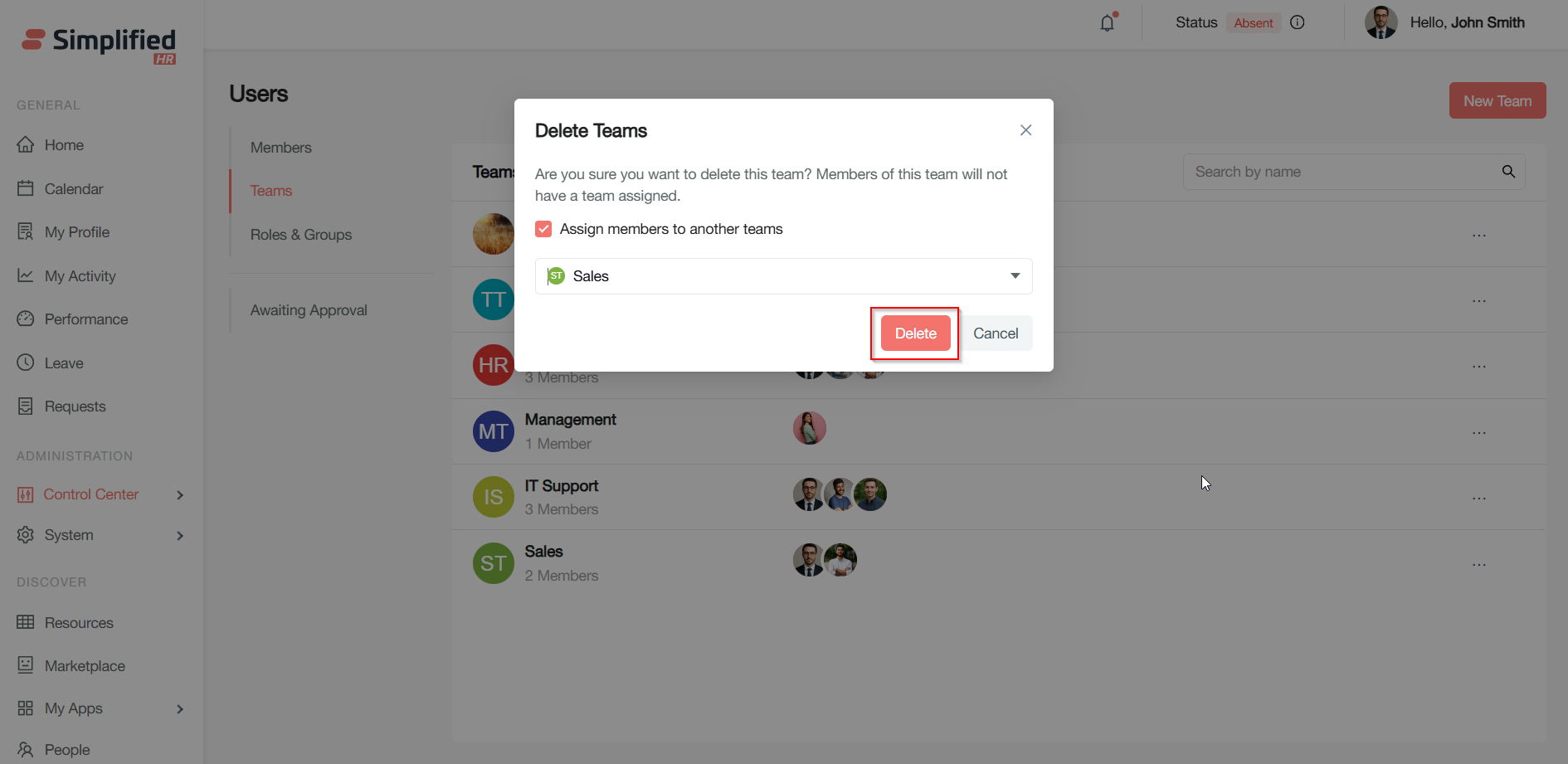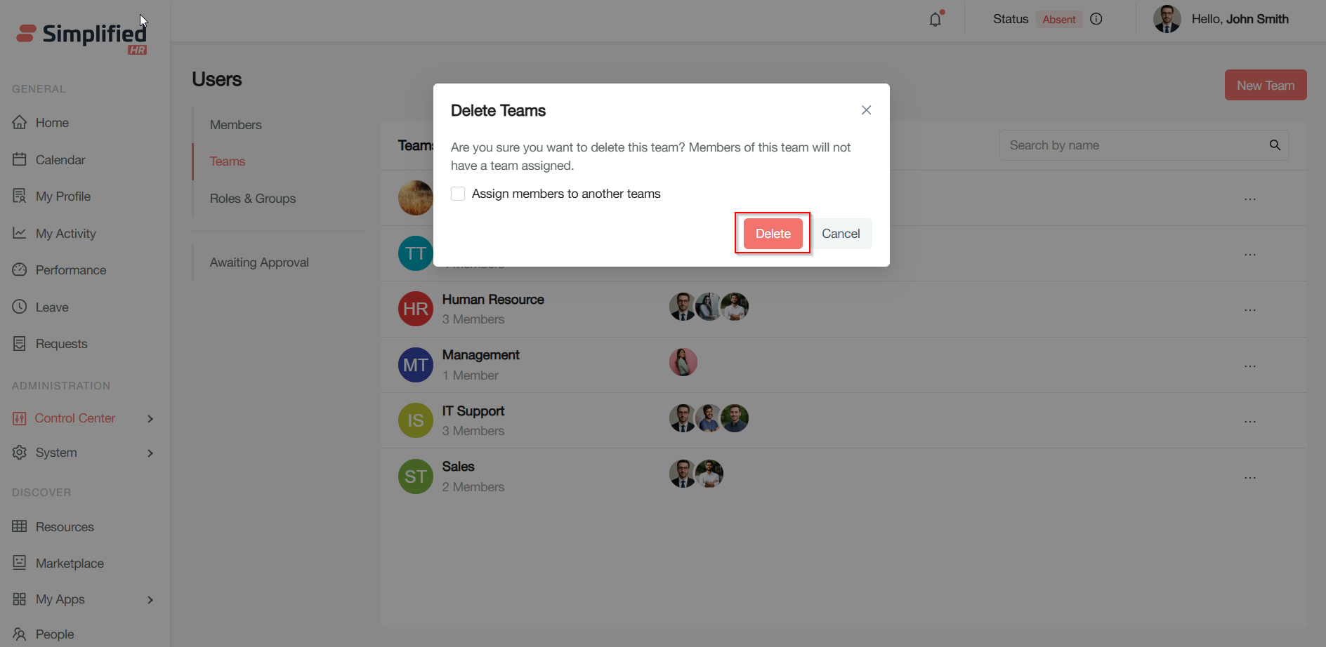 Confirm that deleting the team will leave members unassigned unless reassigned