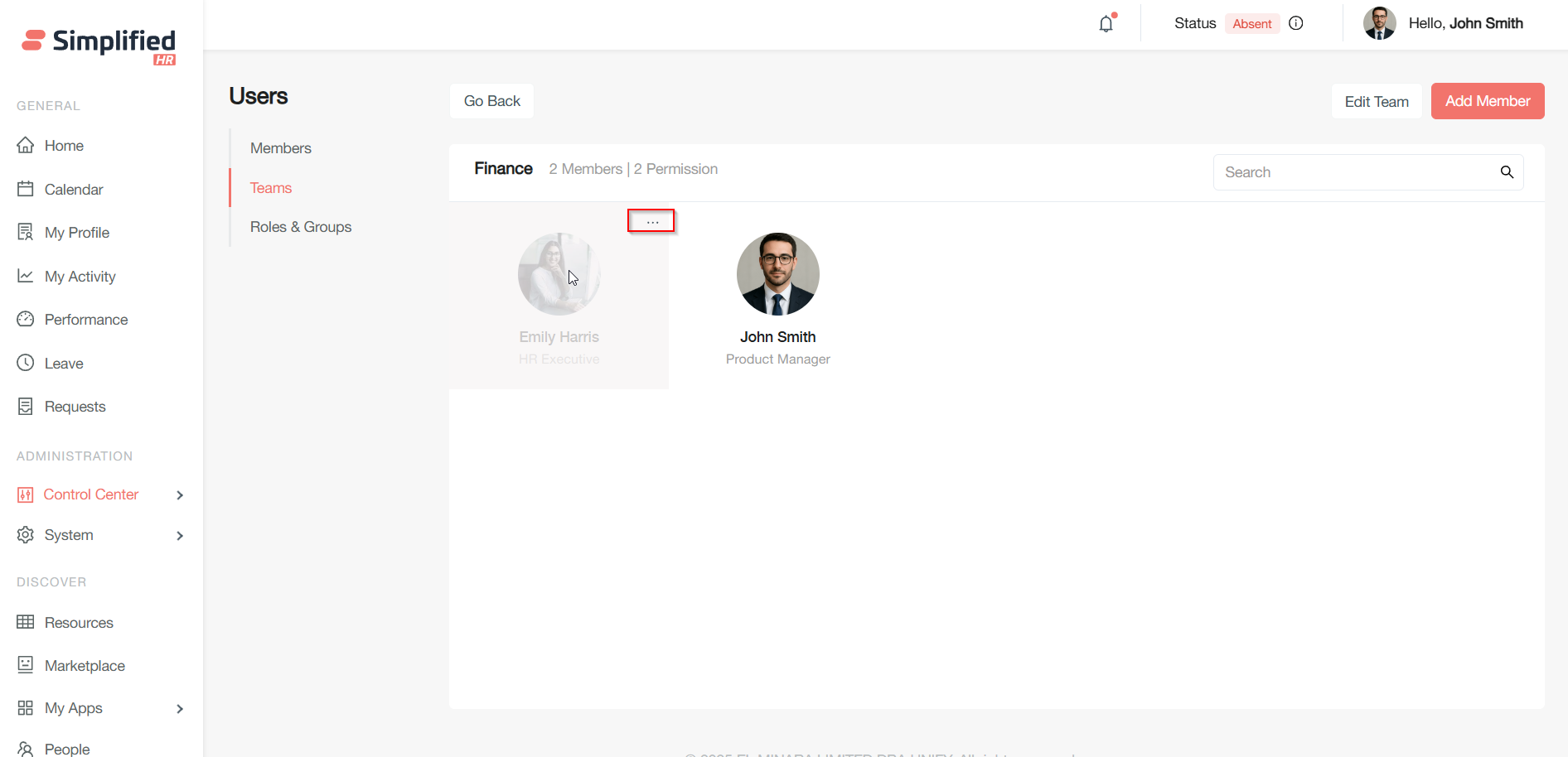 Hovering over any team member shows a vertical ellipsis ("...") menu with these options: