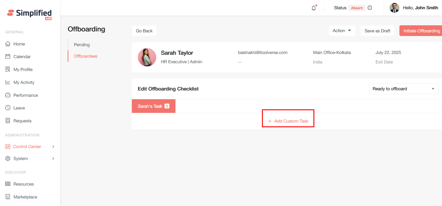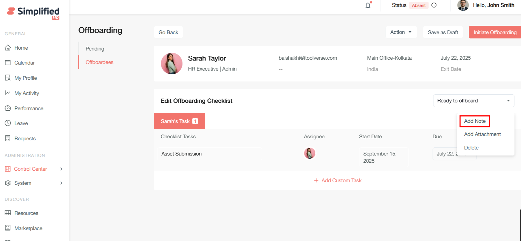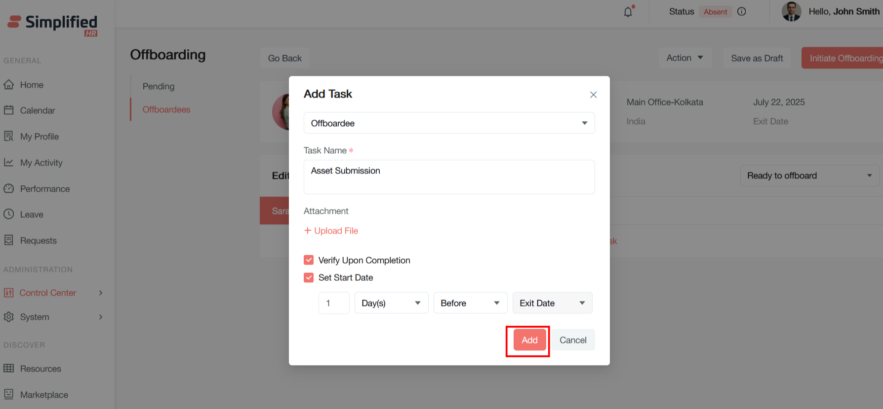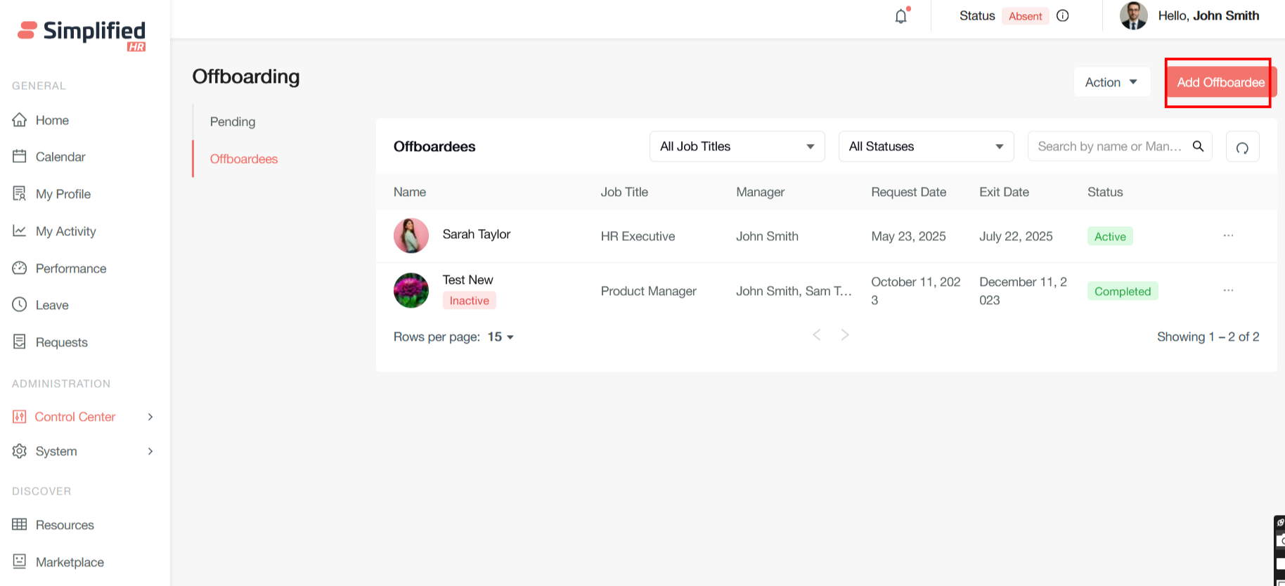 Admin can directly Add an Offboardee by clicking on the Add Offboardee button.