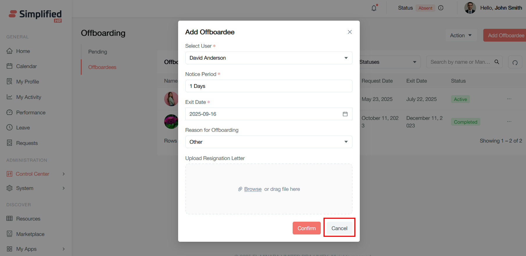 Withdrawing or canceling an offboarding request is a feature available allowing organizations to reverse the departure process when circumstances change. This functionality is essential when employees decide to stay or when departure timelines need adjustment.