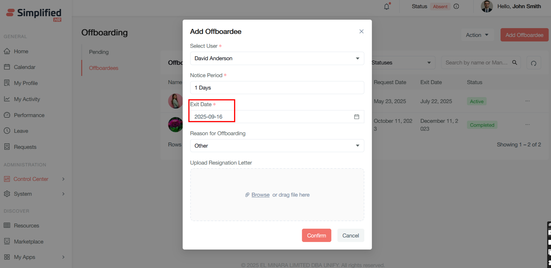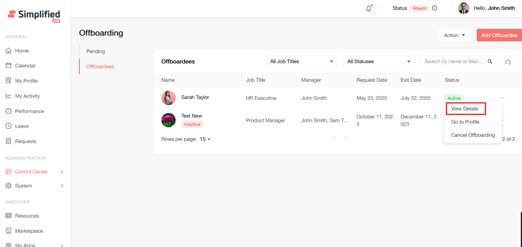 Request Date: The date when the offboarding request was submitted. This marks the official start of the offboarding process.